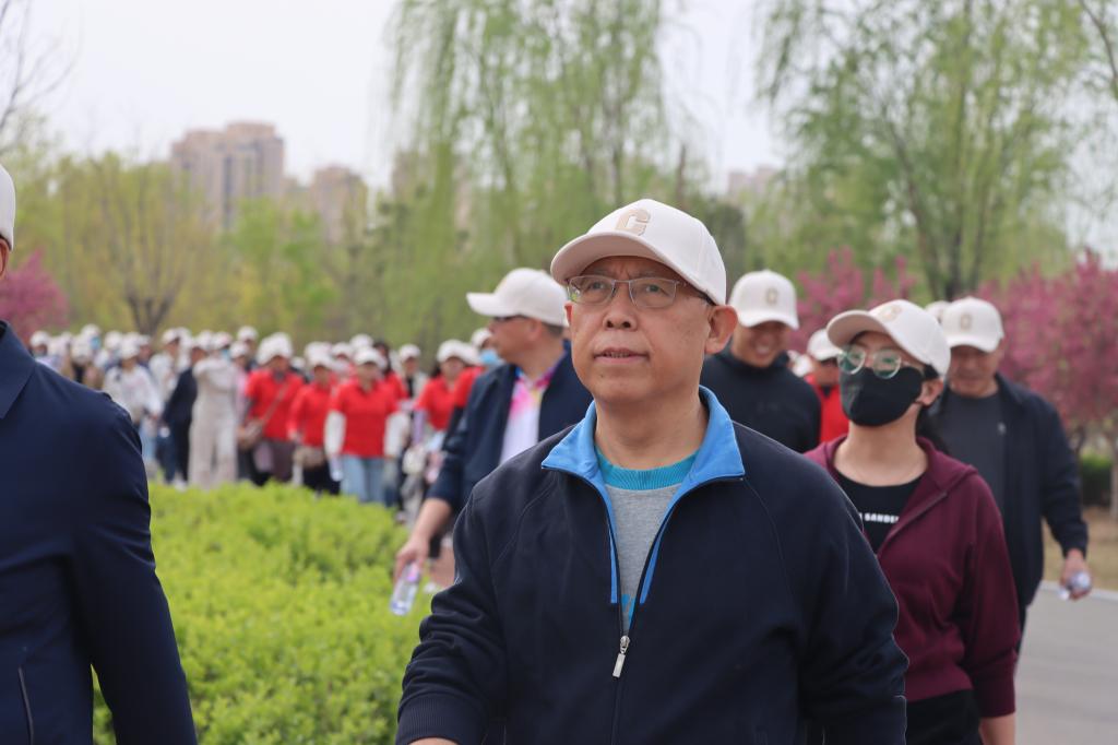 春风拂绿岸,健步正当时。沐浴着阳光,吹拂着和风,4月8日下午,我校举办“爱沧州·健步走运河”教职工健步走活动,号召教职员工用脚步丈量流域河川,感受自然之美。校领导张占平、范小振、周振平、郭玉秀、朱蓬华和各分工会教职工齐聚百狮园的绿荫赛道,用铿锵步伐踏响春天的旋律。