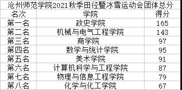 在校党委的大力支持下,在各部门、各学院的积极参与下,在全体运动员、裁判员、工作人员的共同努力下,经过为期一天半的激烈比赛,沧州师范学院2021年秋季田径暨冰雪运动会圆满落幕。比赛期间,全体运动员不畏强手,团结协作,文明参赛。在赛场上顽强拼搏,在赛场下加油鼓劲,既发扬了“孜孜以求,团结奉献,精益求精,敢于胜利”的师院精神,又充分展现了“友谊第一,比赛第二”的运动竞技精神。
