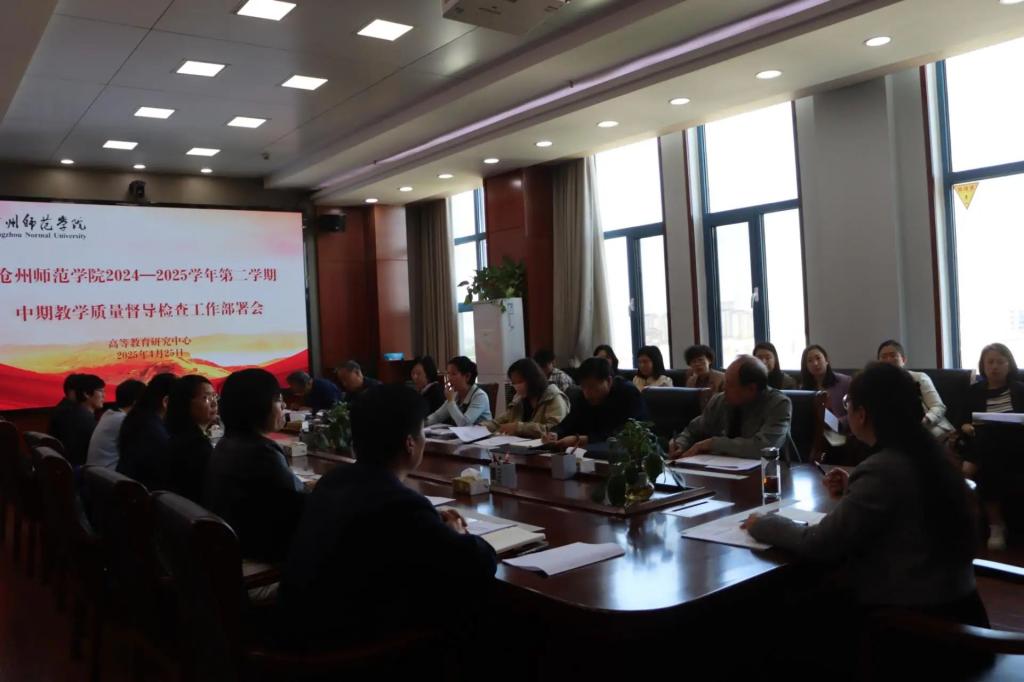 为迎接新一轮本科教育教学审核评估,加强教学质量监控与督导,推进教育教学改革,4月25日,我校召开2024-2025学年第二学期中期教学质量督导检查工作部署会。党委常委、副校长郭玉秀出席会议并讲话,高等教育研究中心主任苟增强主持会议,学校督导组成员、二级学院教学质量监控负责人及相关工作人员参加会议