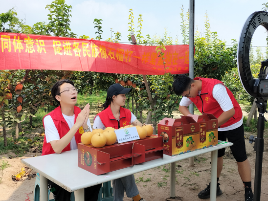为办好此次“直播带货”,直播前,直播团队成员们在详细了解当地农产品基本状况的基础上,选定了秋月梨作为此次的直播产品。直播团队成员结合自身专业特色,根据产品的特点,撰写了独具特色的解说词,为直播做好充足准备。同时,发动经济管理系和齐越传媒系师生通过朋友圈、微信群等渠道转发直播公告,广泛开展活动预热,营造浓厚的宣传氛围,汇集各方力量助力上农产品销售。