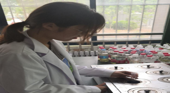 水样加入硫酸使呈酸性后,加入一定量的高锰酸钾溶液,并在沸水浴中加热反应--定的时间。剩余的高锰酸钾,用草酸钠溶液还原并加入过量,再用高锰酸钾溶液回滴过量的草酸钠,通过计算求出高锰酸钾指数数值。因为高锰酸盐指数是一个相对的条件性指标,其测定结果与溶液的酸度、高锰酸盐浓度、加热温度和时间有关。因此,测定时小分队成员们严格遵守操作规定,使结果更具可比性。