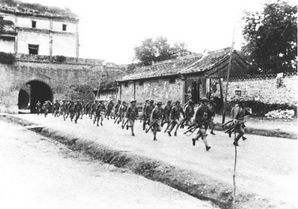 △驻守宛平城的中国军队奔赴卢沟桥抵抗日军(资料照片)。新华社发