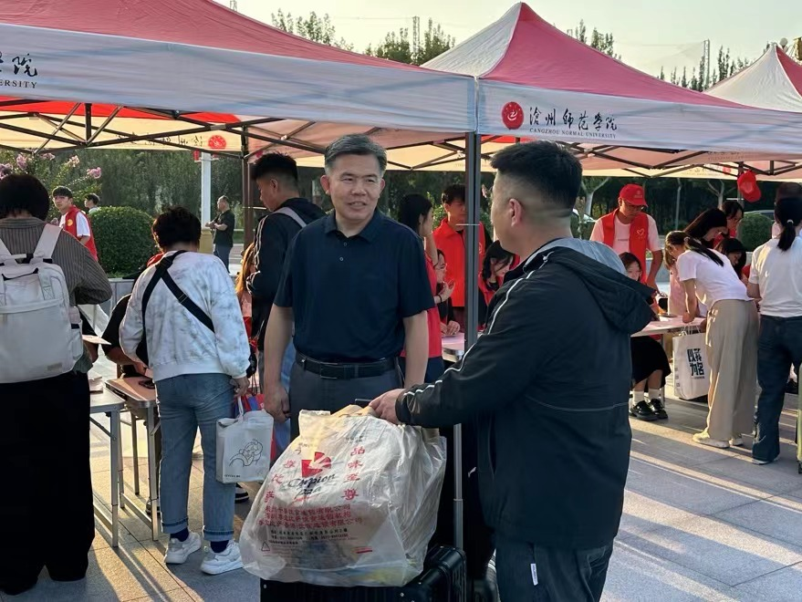 党总支书记迟建文、党总支副书记黄晓寸、2024级辅导员曹芳格薇老师指导新生报道